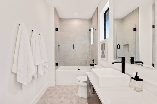Bathrooms can be a place of rest, rejuvenation, and peace. We blend neutrals with color, patterns with solids, and form with function to create an ideal, clean space.