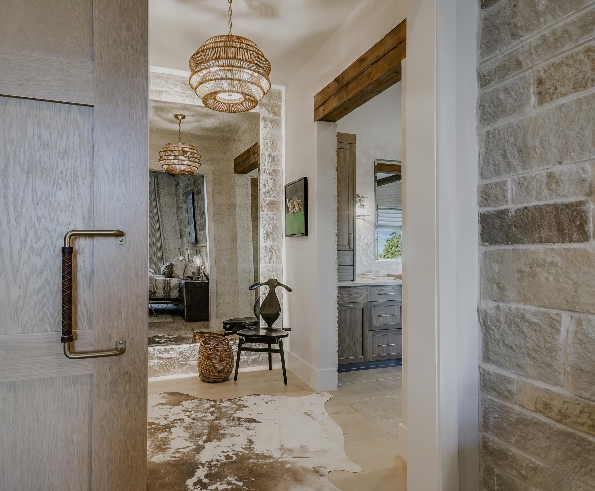 Cutting Ranch was designed as a thoughtful new build set on an expansive horse ranch, where simplicity and authenticity were always the guiding principles. From the start, the goal was to create a home that felt grounded in its surroundings; uncomplicated, intentional, and deeply connected to the land. Classic ranch elements like grand white oak beams and solid interior doors establish a strong architectural backbone, giving the home a sense of permanence and scale. Texas limestone was layered throughout to add texture, warmth, and a regional character that feels both familiar and timeless.