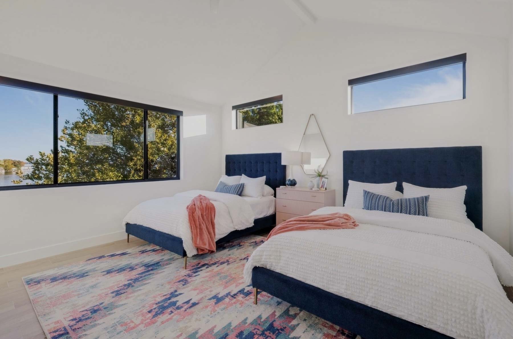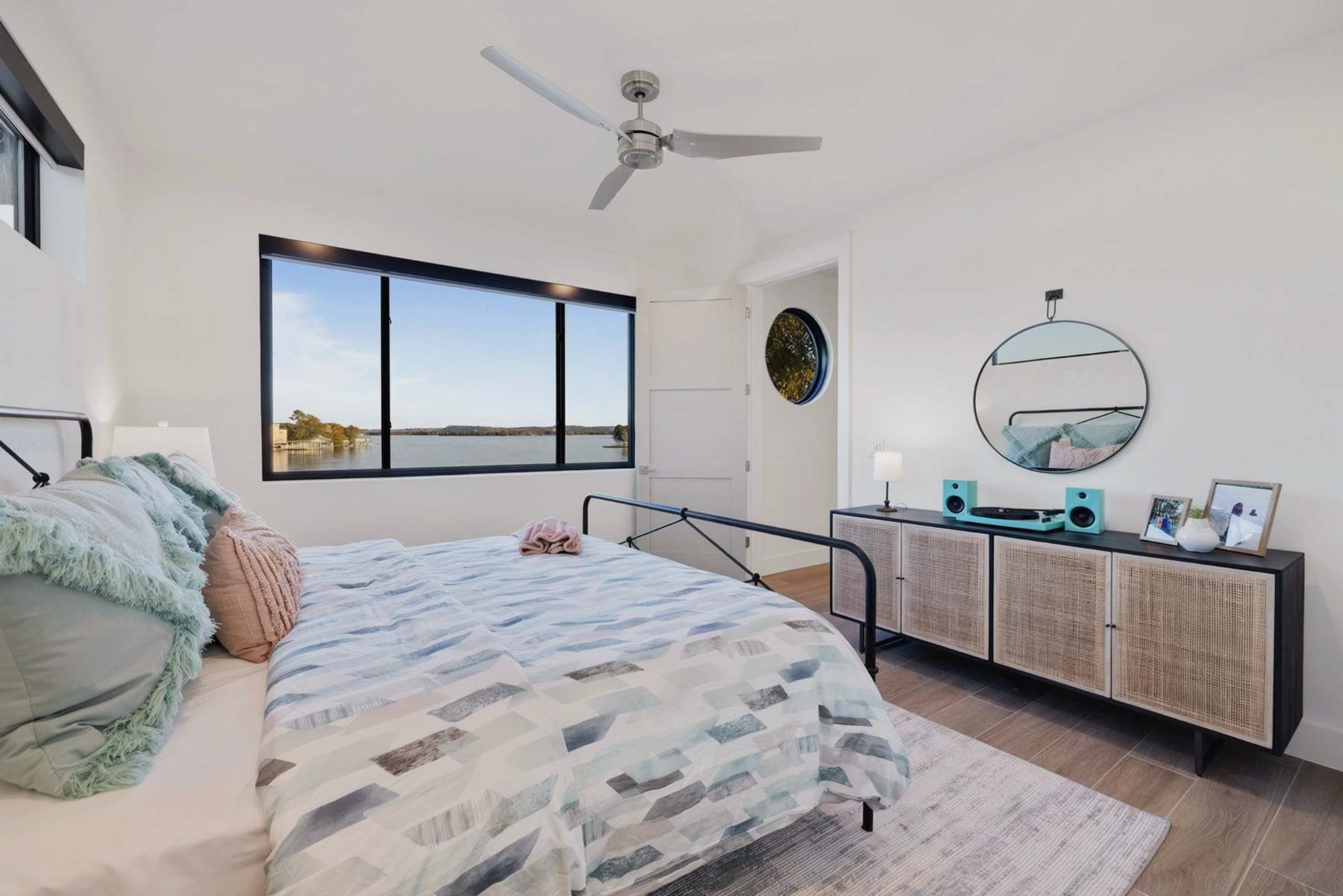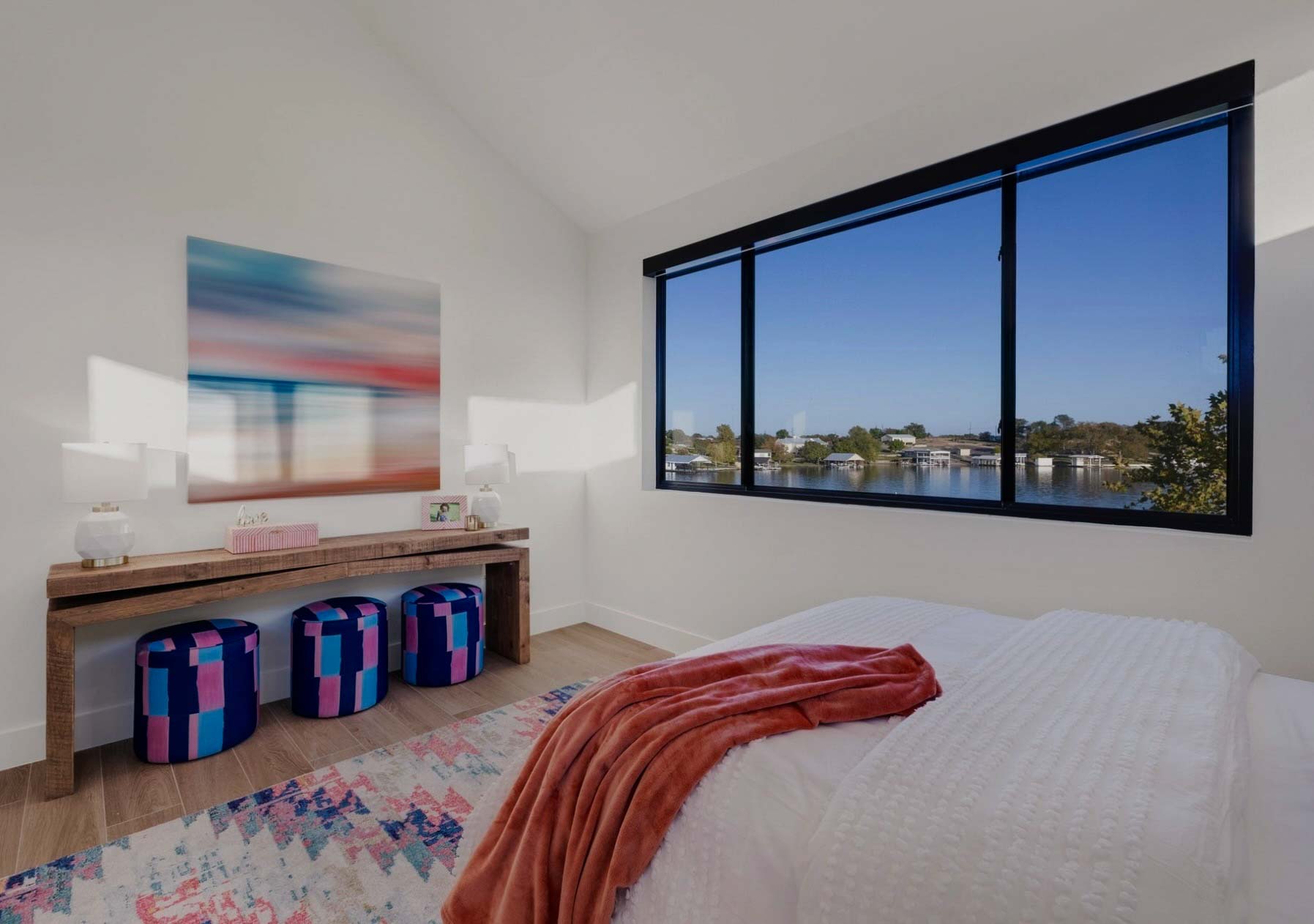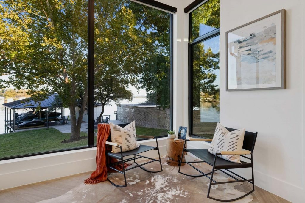 The R & R project was designed as a true lake escape, relaxed at its core but thoughtfully elevated in every detail. We were hands-on from the architectural phase all the way through completion, making sure every decision supported how the home would be lived in and enjoyed. The goal was to create a vacation home that felt open, clean, and spacious, with seamless flow between gathering, dining, and lounging spaces. Expansive windows and intentional sightlines pull the lake views deep into the home, blurring the line between indoors and out.