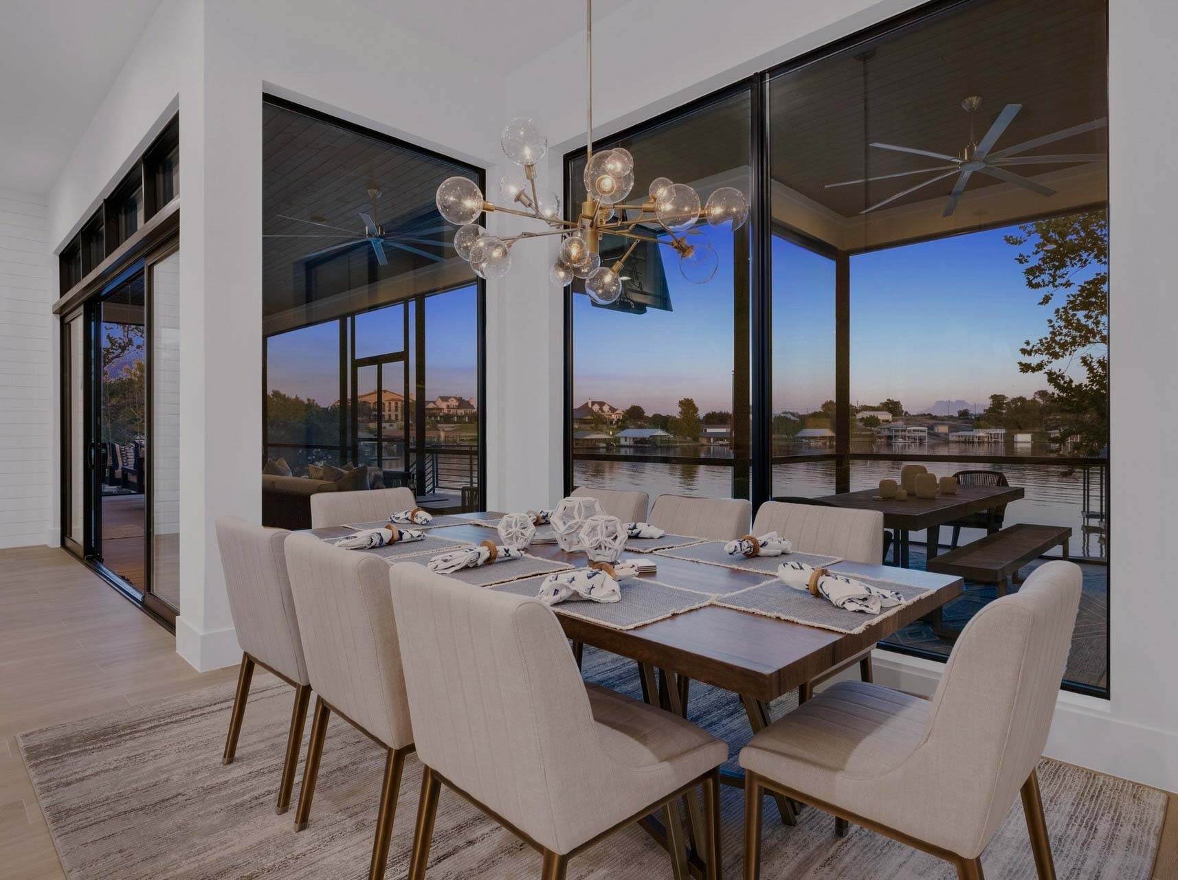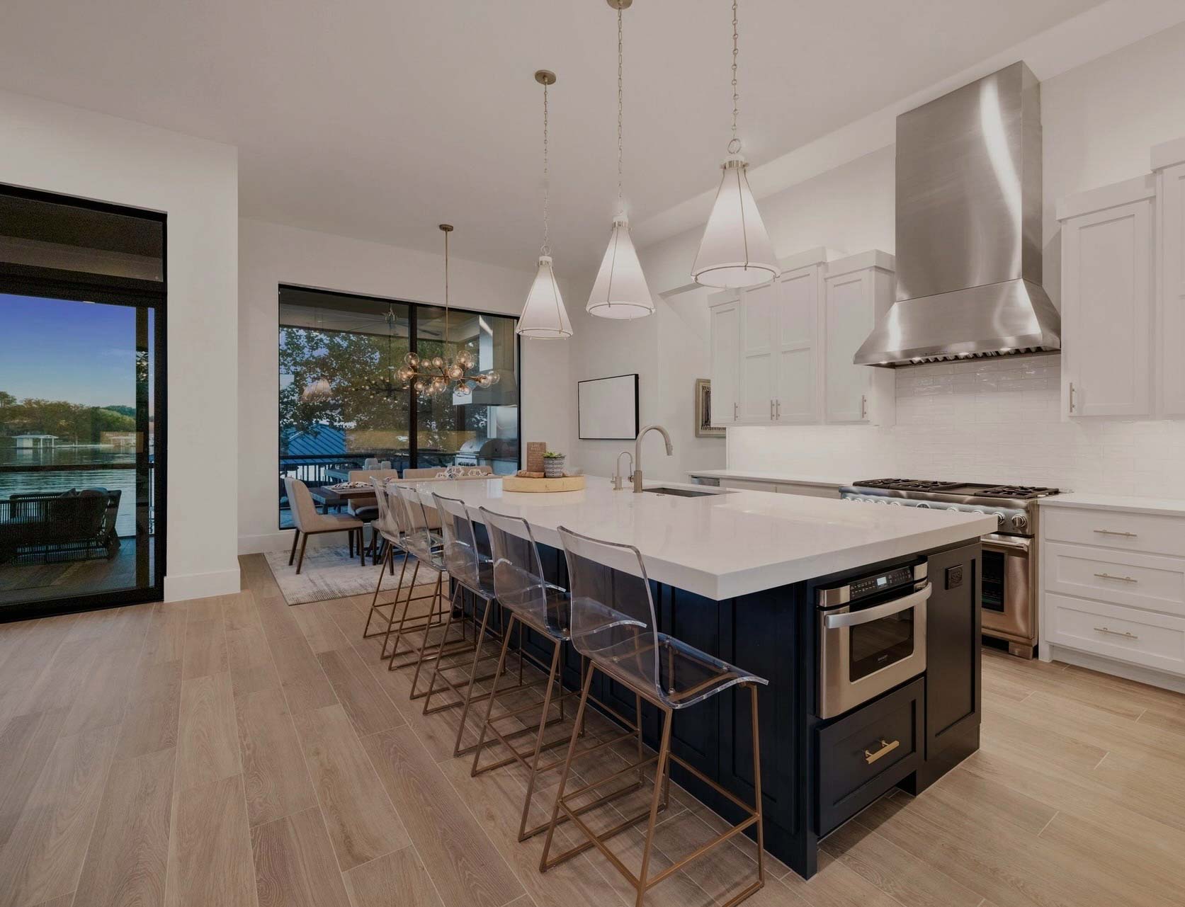 Each area was designed for multi-use; quiet mornings, lively dinners, and long evenings spent together after a day on the water. The materials and finishes strike a balance between durability and sophistication, perfect for a high-traffic lake house that still feels polished. Elevated ceilings and custom details give the home a light, airy presence without ever feeling formal. R & R ultimately lives up to its name: a place that feels both restorative and ready for entertaining.